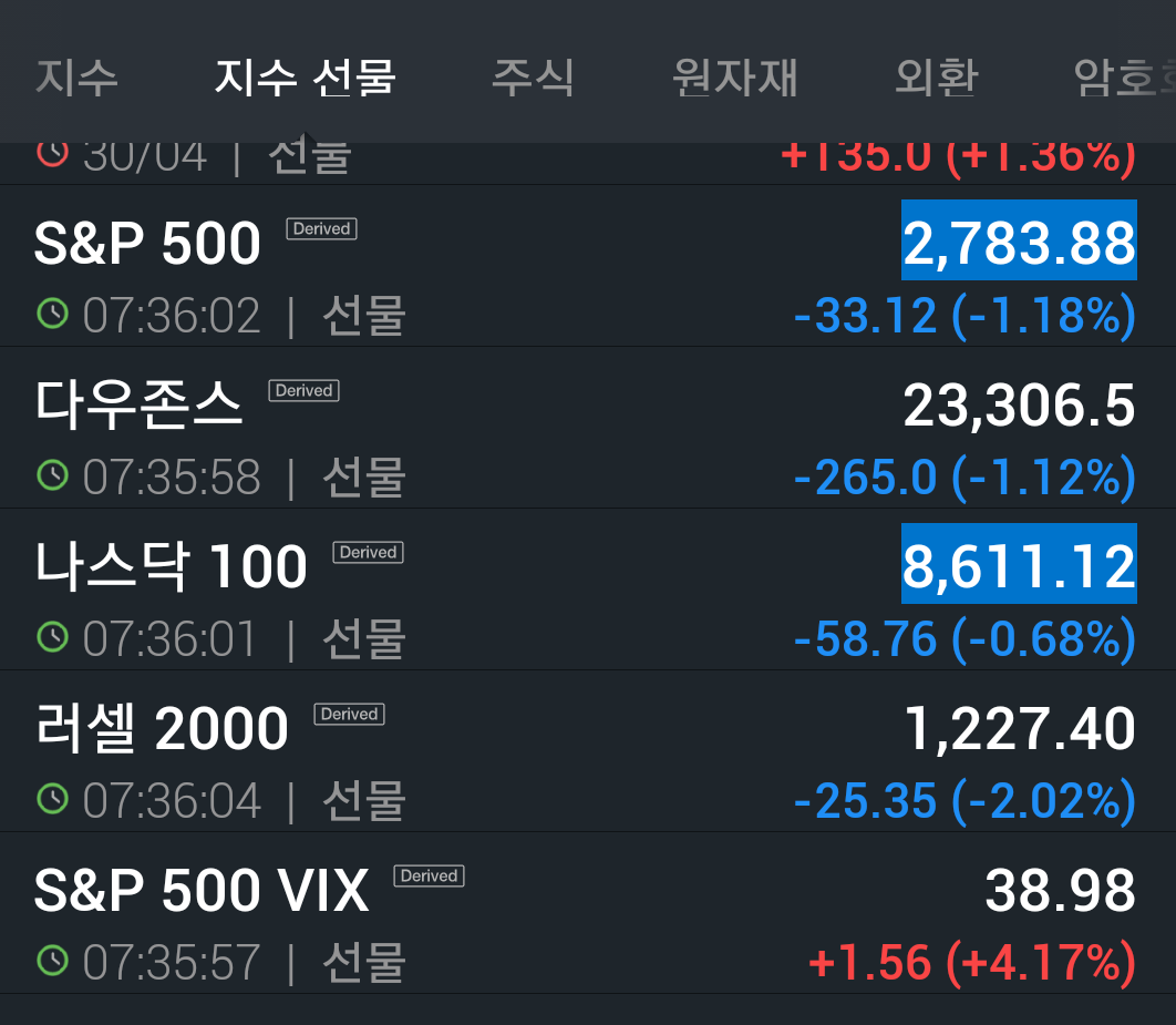 위는 실시간 미국선물지수입니다.
