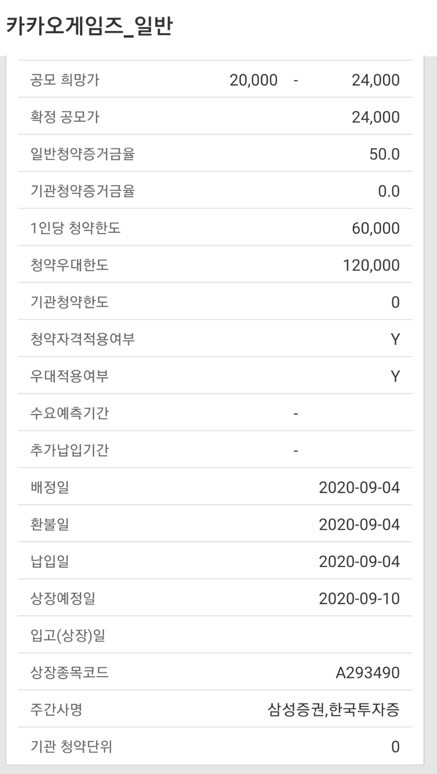 - 기관투자자 및 일반투자자 : 2020년 9월 1일 ~ 2020년 9월 2일