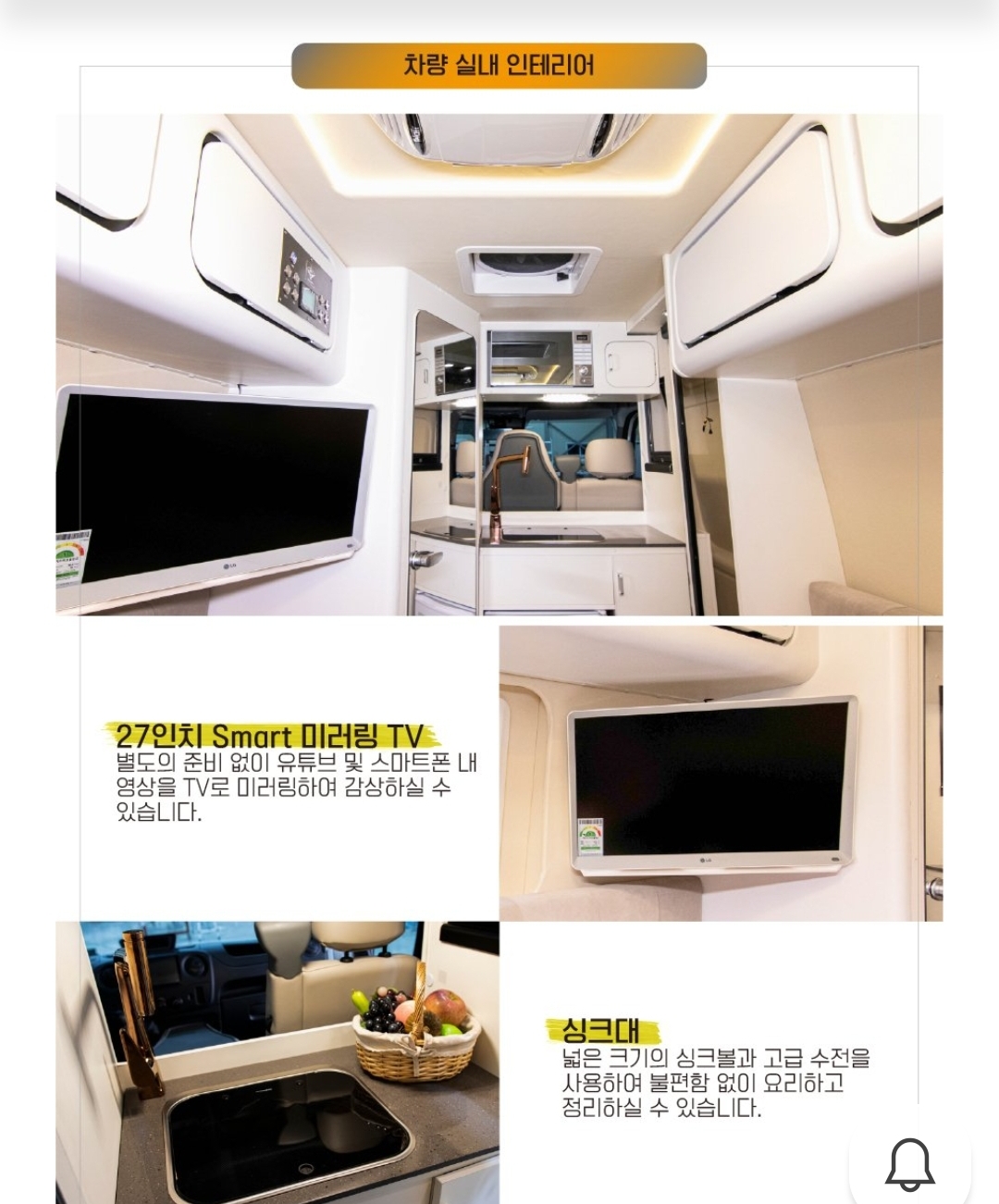 기본적인 사양이다. 이것저것 캠핑카에 필요한것들은 다 장착이 되어있는것을 알수 있다.
